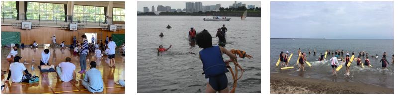 瞬時の判断、的確な対応を冷静にできるよう、定期的に体験・勉強会をします。水難は、海や川だけでなく、自宅の風呂場などでも起こりえる事故です。