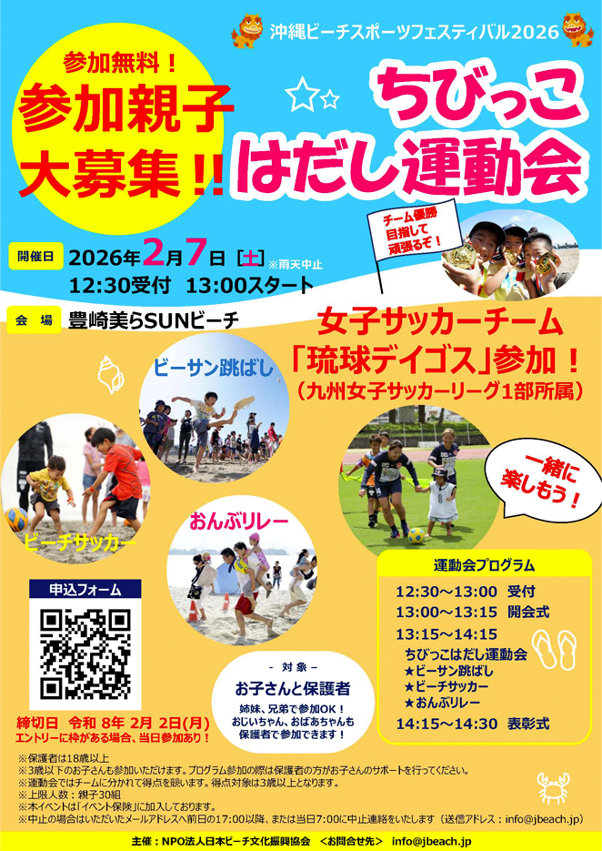 2月7日(土)豊崎美らSUNビーチにて「ちびっこはだし運動会」を開催いたします!
